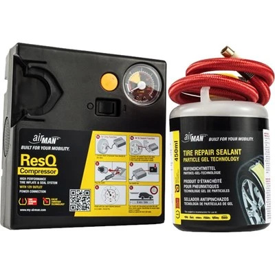 AIRMAN ResQ ilmakompressori 12V + 450ml korjausneste