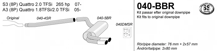 Simons 3″ putkisto, kahdella 80mm pyöreällä ulostulolla. Materiaali ruostumaton teräs. Sisältää kiinnitystarvikkeet.