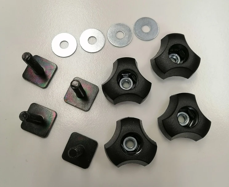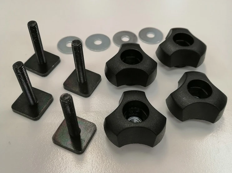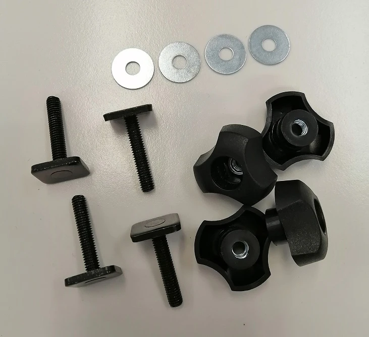 Soveltuu boksien kiinnittämiseen T-uralla varustettuihin taakkatelineisiin. Sarja sisältää 4kpl T-pultteja ja 4kpl siipimuttereita sekä 4kpl aluslevyt. Tällä sarjalla myös vanhempien boksien kiinnitys onnistuu uudempiin leveillä alumiinitangoilla varustettuihin taakkatelineisiin, joissa on putken yläpinnassa T-ura.