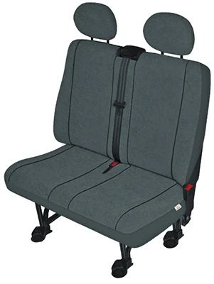 Yleismallinen, polyesteristä ja vaahdotetusta polyuretaanista valmistettu 2-istuttavan apukuljettajan penkin istuinsuoja pakettiautoihin ja minibussehin. Airbag-yhteensopiva.