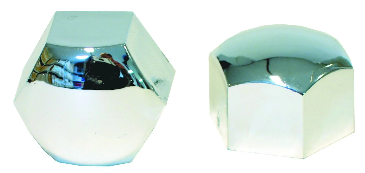 Mutterinsuojus/-koriste 19mm kannalla olevien muttereiden ja pulttien ehostamiseen, muovia, kromattu. Suojuksen korkeus 17mm, syvyys 12mm.