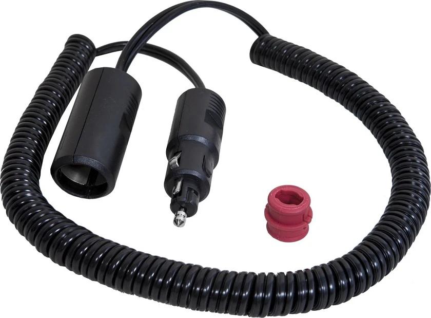 Laadukas jatkojohto 21mm savukkeensytyttimeen ja 12mm sähköliitäntään. 12-24V, 8 A sulake, Spiraalijohdon pituus 0,6-3m. 2-toiminen – voidaan kytkeä DIN rasioihin kiertämällä punainen suoja pois. Led-merkkivalo. 12-24V. 8 A sulake. Spiraalijohdon pituus noin 0,6-3m.