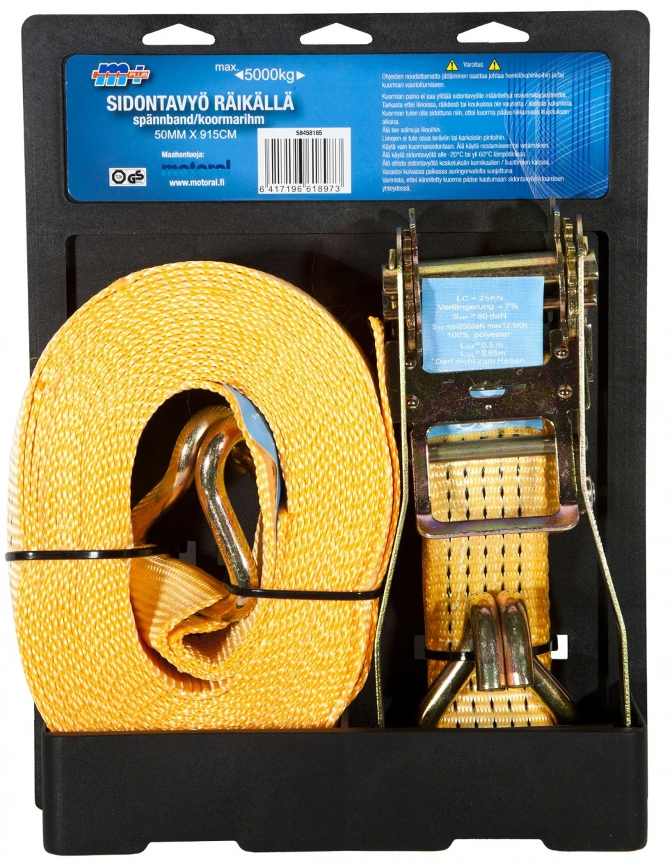Kuorman sitomiseen ja kiinnittämiseen. Kaksiosainen räikkä ja kaksoiskoukku. Erittäin hyvä kesto uv-valoa (päivänvalo) sekä ruostumista vastaan.