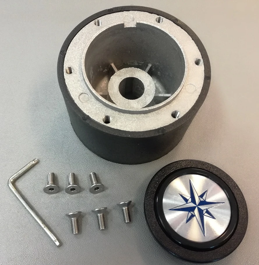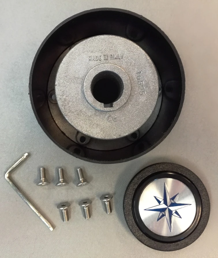 Sopii useimpien veneiden rattiputkeen. Keskiössä kartio/kiila -kiinnitys. Venekeskiössä vain yksi reikäpiiri 6 pulttisille ohjauspyörille. Kartion mitat (noin): alapää 19mm, yläpää 17mm. Keskiö sisältää keskiömerkin ja rosteriset uppokantaiset kiinnityspultit.