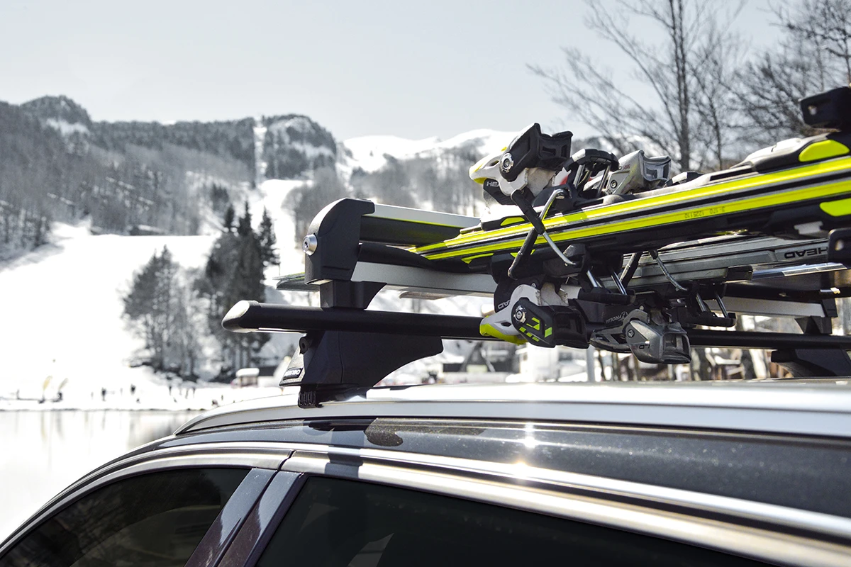 Alumiininen lukittava teline neljälle suksiparille (sukset vastakkain) tai kahdelle lumilaudalle. Suksiteline on tarkoitettu taakkatelineisiin, joissa on alumiininen T-urallinen tanko. Alumiinitankojen T-uriin (20mm T-ura) sopivat T-pultit sisältyvät pakkaukseen. Telineen maksimikantavuus 28 kg. TUV ja City Crash -hyväksytty.