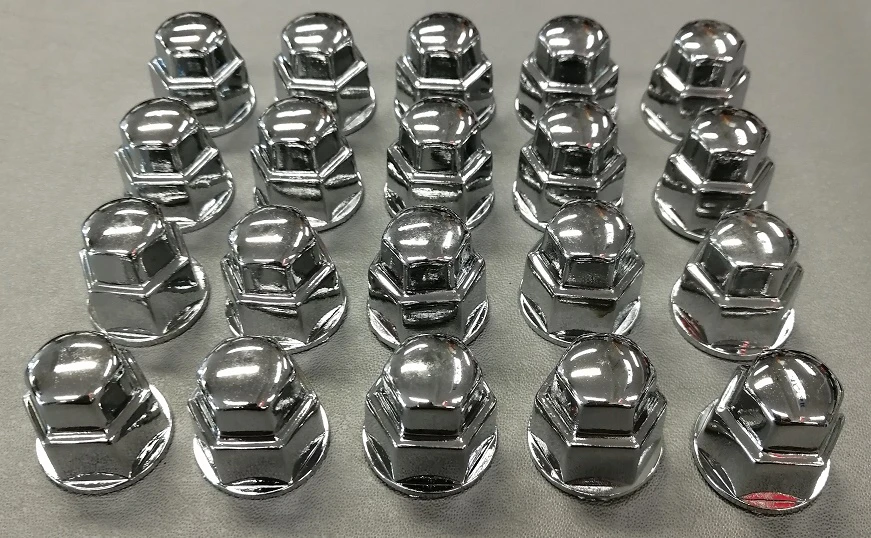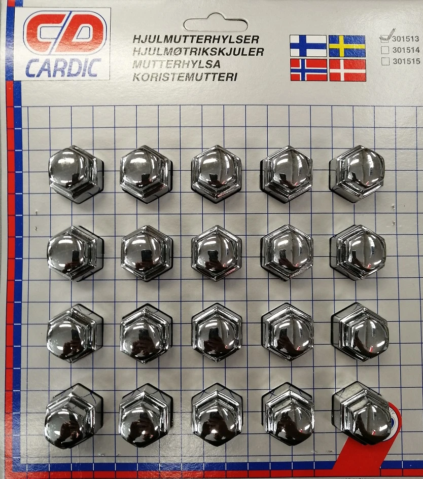 Mutterinsuojus 19mm kannalla olevien muttereiden ja pulttien ehostamiseen, muovia väri kromi.