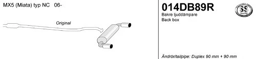 Simons merkkinen takavaimennin, molemminpuolin yhdellä 90mm pyöreällä ulostulolla. Materiaali ruostumatonteräs.
