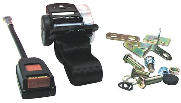 E-hyväksytyt 3-pisteen rullavyöt etupenkille. Sarja sisältää tarvittavat asennusosat. Lukkovarren kokonaispituus 30cm, josta lukkopesän osuus 9cm. Vyön pituus 295 cm. Voidaan käyttää oikealla ja vasemmalla.