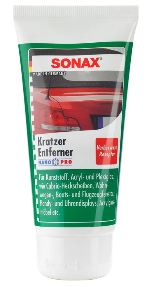 Poistaa naarmut mm. asuntovaunujen veneiden ja avoautojen muovi-ikkunoista, moottoripyörien visiireistä sekä puhelimien näytöistä yms. kohteista. Soveltuu muovi-, akryyli- ja pleksilasipinnoille. Ei sisällä silikonia.