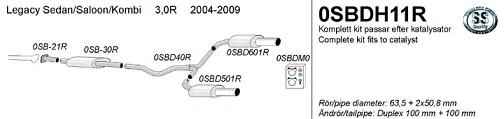 Subaru Legacy 04-09 3,0R Putkisto 2,5″ / 2,0″ RST cat-back ulostulo molemmin puolin 2x100mm pyöreä.