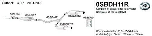 Subaru Outback 04-09 3,0R Putkisto 2,5″ / 2,0″ RST cat-back ulostulo molemmin puolin 2x100mm pyöreä.