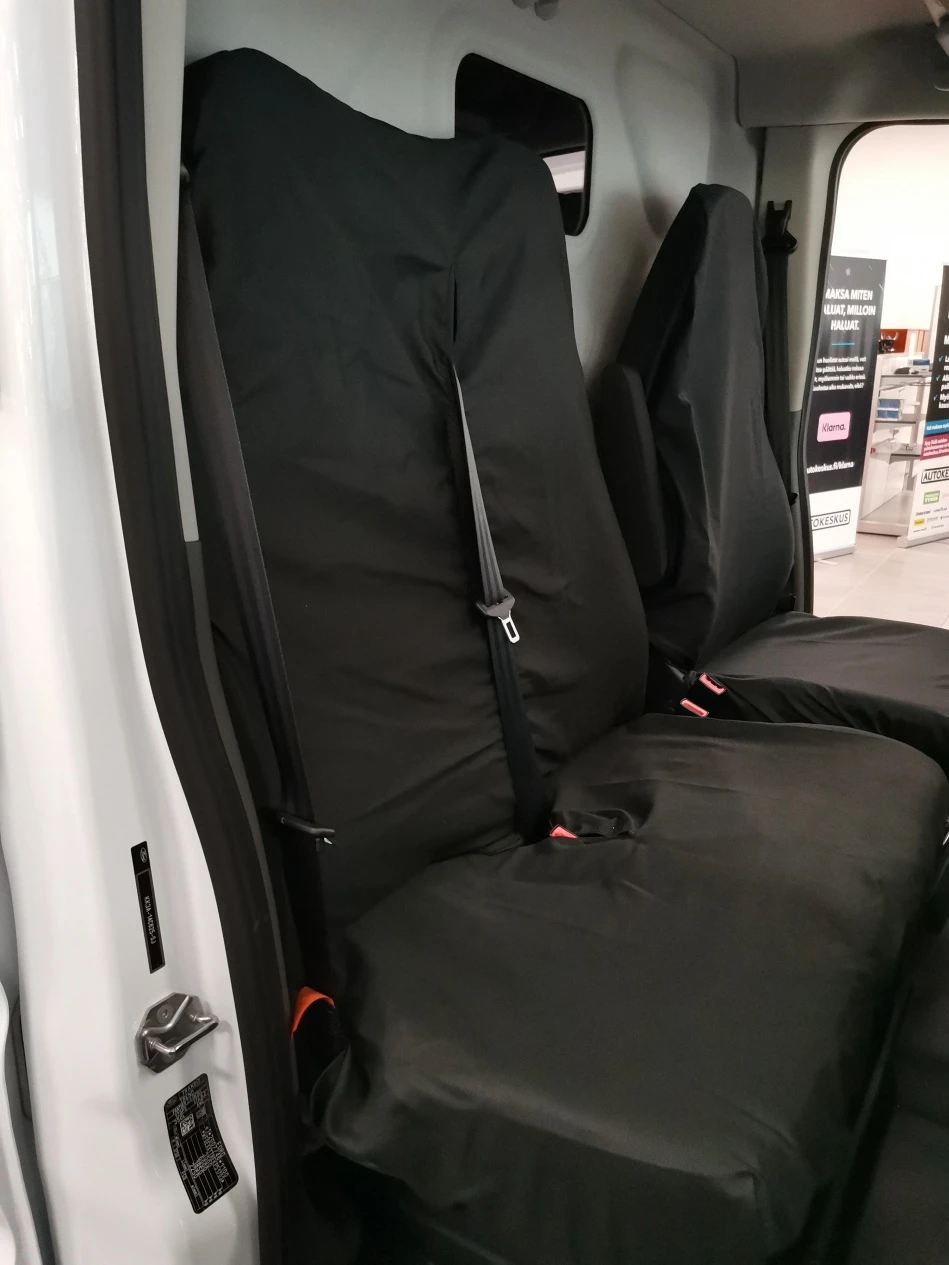 Kotimainen TammerS korjaamosuoja, Enstex kangasta. Pakettiauton 2-istuttavaan penkkiin.