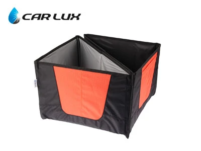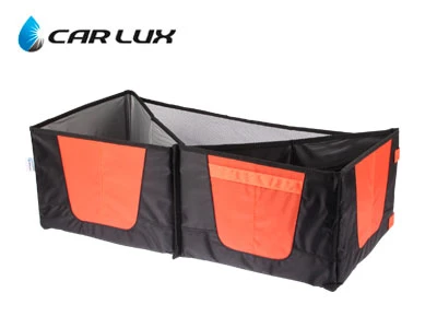 Lokerikko auton tavaratilaan, kantokahvat, tarrakiinnitykset, 37x37x24cm / 75x37x24cm, väri musta/oranssi.