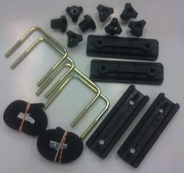 Suksiboksin kiinnikesarja leveämmille taakkatelinetangoille. Tätä sarjaa käyttämällä saat asennettua myös vanhemmat boksit uudentyyppisille leveille (esim. Thule WingBar) taakkatelineputkille. Soveltuu käytettäväksi lähes kaikissa bokseissa, myös vanhemmissa malleissa. Tällä sarjalla saat asennettua vanhemmatkin boksit uudentyyppisiin leveisiin taakkatelineputkiin (esim. Thule WingBar ja autojen alkuperäiset). Sarja sisältää 4kpl U-pultteja, 8kpl siipimuttereita, 4kpl vastalevyjä ja 2kpl kiristysliinoja.