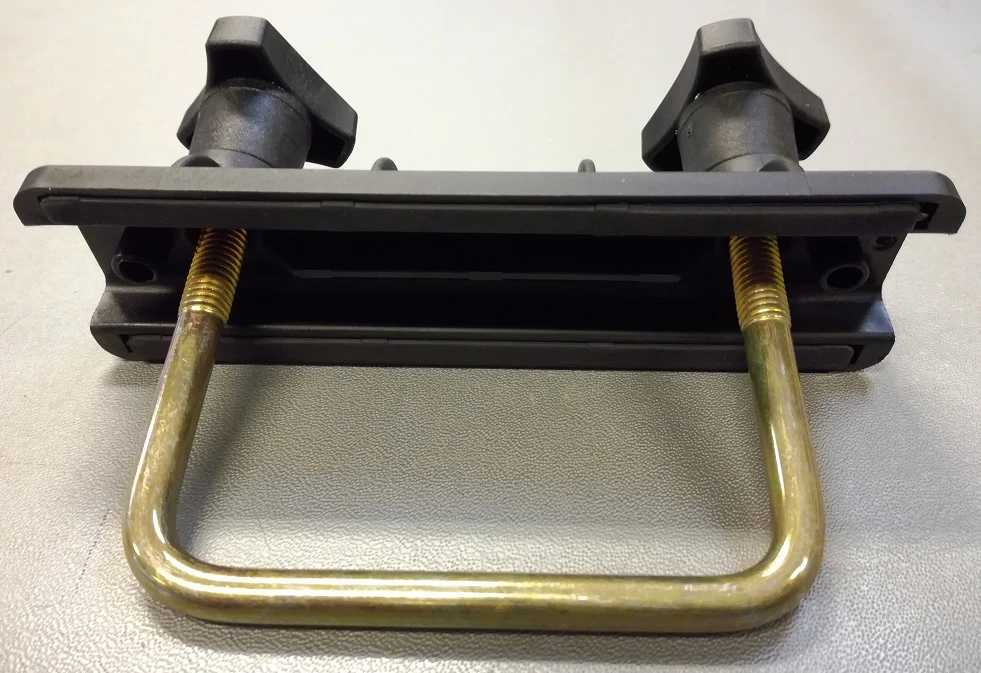 U-pultin ulkoleveys 98mm, sisäleveys 83mm ja korkeus 80mm, josta kierteen pituus n. 40mm. Leveys reiän keskeltä keskelle 90mm. Boksin sisälle tulevan vastalevyn leveys 43mm, pituus 137mm ja korkeus 22mm. U-pultti on 8mm kierteellä. Kiristysliinojen pituus 220cm. Voidaan käyttää myös tasapohjaisessa boksissa.