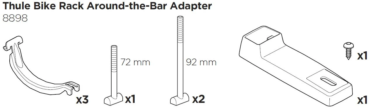 Putken ympäryssovitin, jolla Thule UpRide 599 -polkupyöräteline voidaan asentaa neliöputkiin tai pyöreisiin alumiinisiin telineputkiin.