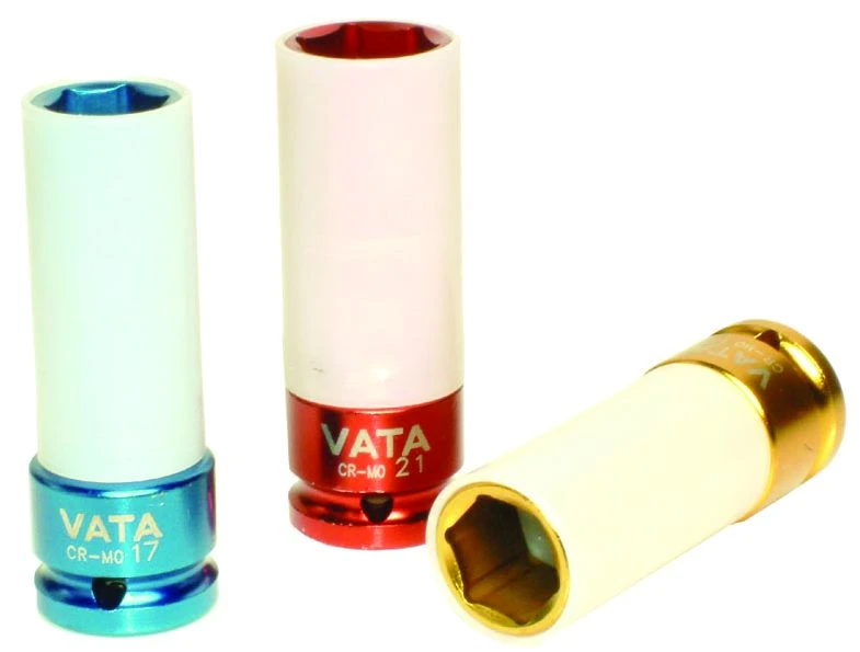 Ohutseinäiset voimahylsyt muovisuojalla 1/2″ vääntimille. Esim. kevytmetallivanteiden pultteihin ja muttereihin. Kromimolybdeeniteräs. Saatavilla olevat koot: 17mm, 19mm ja 21mm.