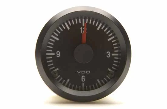 VDO:n valmistama pyöreä, 52mm halkaisijalla oleva kello. 12V, 52mm (ei sekunti osoitinta)