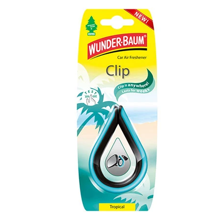 Sporttinen tuoksu aktiivisille ihmisille. WUNDER-BAUM Clip on uusi, monipuolinen tapa raikastaa autosi: Kiinnitä Clip peruutuspeiliin, niskatukeen tai minne vain missä haluat nauttia raikkaasta tuoksusta.